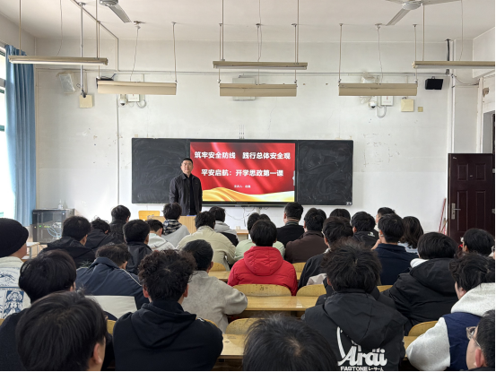 3月25日上午,学院党总支副书记赵巍以“筑牢安全防线 践行总体国家安全观” 为主题,为机械设计与制造专业全体学生讲授开学思政第一课。