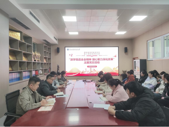 2026年3月24日下午,教工国际教育党支部在JX7408党员活动室召开“深学悟透全会精神 凝心聚力深化改革”主题党日活动。