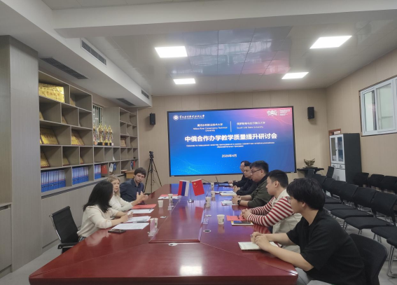 为提升中俄合作办学教学实施效能与人才培养质量,推动合作办学专业提质增效、行稳致远,4月14日下午,国际教育学院召开中俄合作办学教学质量提升专题研讨会。国际教育学院中俄合作办学项目管理团队全体教师、机械工程学院教研室代表及俄罗斯南乌拉尔国立大学来访授课教师代表团参会,会议由国际教育学院副院长吴丰主持。