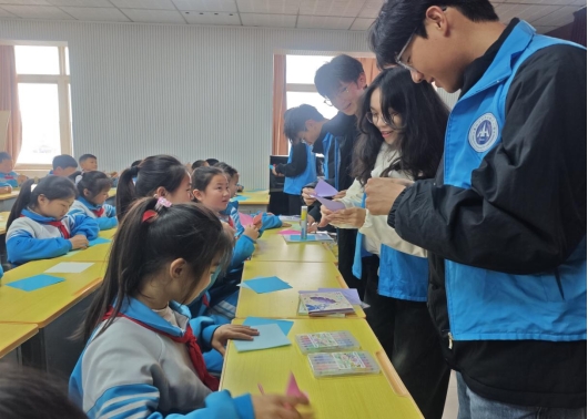 中外志愿者们耐心细致地为小朋友们讲解“安全知识”,并与之展开互动。随后,志愿者与小学生们一起进行了“创意折纸”活动。志愿者们与孩子们并肩而坐,共同动手制作了千纸鹤、小兔子和玫瑰花等充满创意的折纸作品。活动最后,为小学生们送去了文具用品。
