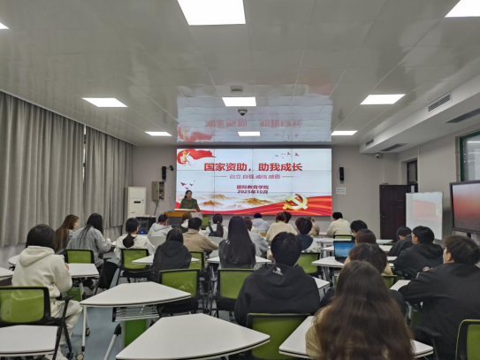 为深入贯彻落实资助育人理念,2025年10月,国际教育学院开展“国家资助,助我成长”主题班会。
