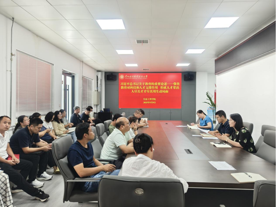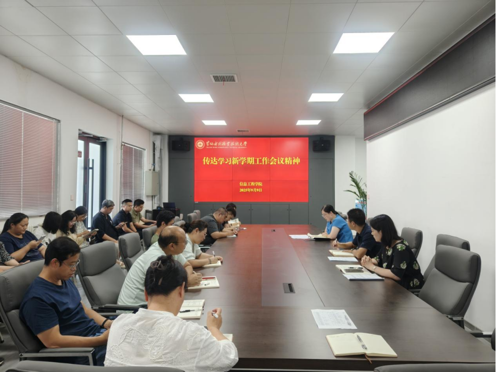 为贯彻落实《黄河水院2025年下半年政治理论学习及思想道德教育计划》学习要求,9月9日,信息工程学院在SY4426组织教职工传达学习新学期工作会议精神,并专题学习习近平总书记在纪念中国人民抗日战争暨世界反法西斯战争胜利80周年大会上的重要讲话和习近平总书记关于教育的重要论述——强化教育对科技和人才支撑作用 形成人才辈出人尽其才才尽其用生动局面,进一步引导全院教职工厚植理想信念,明确新学期工作方向和重点,助推学院高质量发展。
