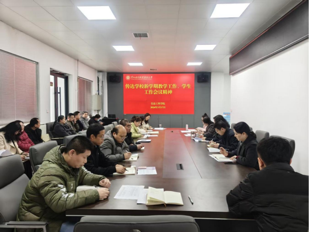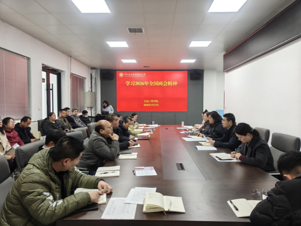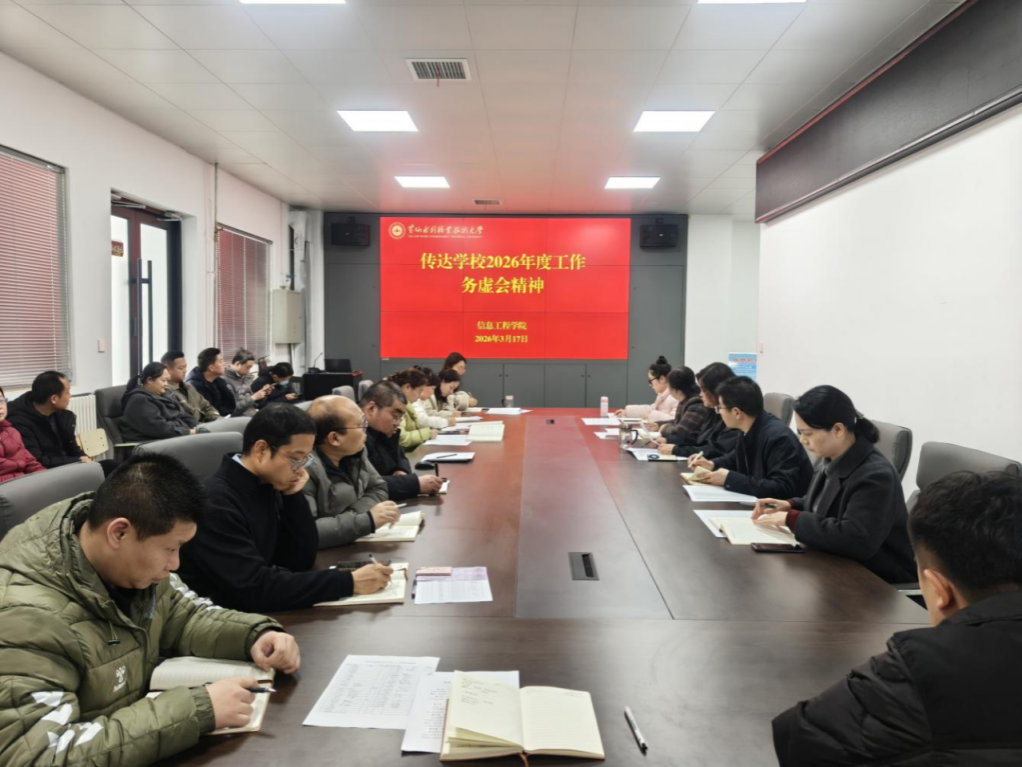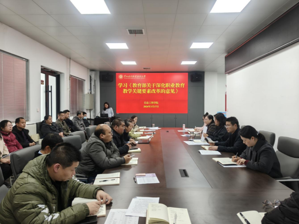 为贯彻落实《黄河水利职业技术大学2026年上半年教职工政治理论学习及思想道德教育计划》要求,3月17日,信息工程学院组织教职工在SY4426会议室开展专题学习,传达学习学校2026年度工作务虚会精神、学校新学期教学工作与学生工作会议精神、2026年全国两会精神,以及《教育部关于深化职业教育教学关键要素改革的意见》。引导全院教师坚持以习近平新时代中国特色社会主义思想为指导,深入贯彻党的二十大和二十届历次全会及全国教育大会精神,落实立德树人根本任务,主动对接学校发展大局,为学校建设特色鲜明的高水平职业技术大学贡献信息力量。