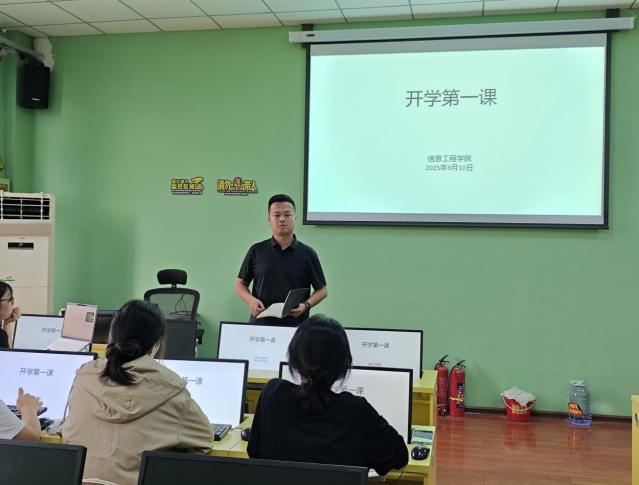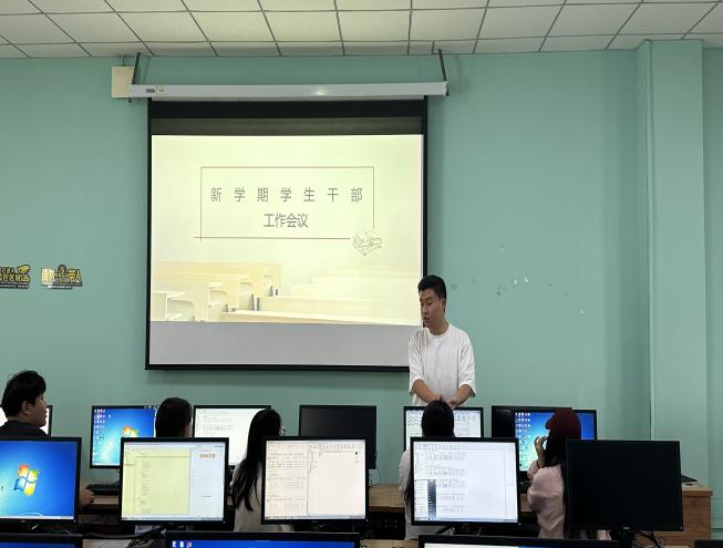 9月13日,信息工程学院辅导员张家兴在4号实训楼4407A2组织召开新学期学生干部工作会议。会上,张老师根据上课出勤率、晚归寝打卡情况,着重强调了新学期学生管理工作的注意事项。要求班干部严于律己,严守考勤,树立纪律标杆,明确职责、相互补位,加强沟通配合,高效推进班级事务。