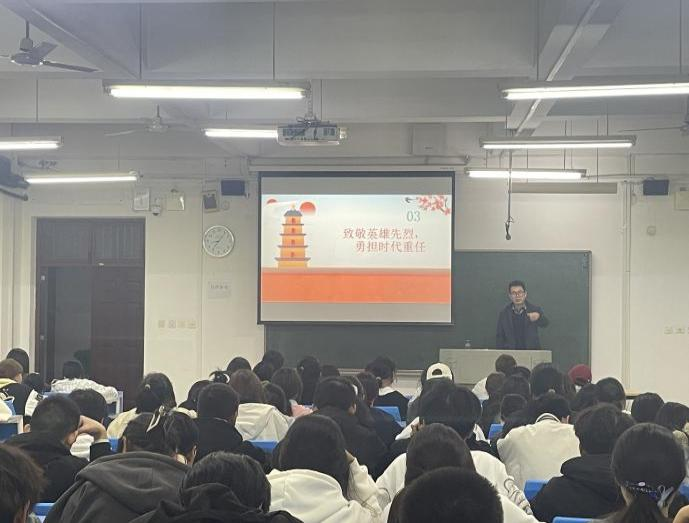 10月23日,信息工程学院辅导员曾鸣在3号教学楼3102组织召开“致敬英雄先烈 勇担时代重任”主题班会。班会上,曾老师讲述抗战时期的经典战役、分享英雄烈士的英勇事迹,再现那段波澜壮阔的历史。同时还结合习近平总书记对青年担当的殷切期望,鼓励同学们从抗战精神中汲取力量,在学业上勤奋钻研,在生活里积极奉献,以实际行动践行青春使命。