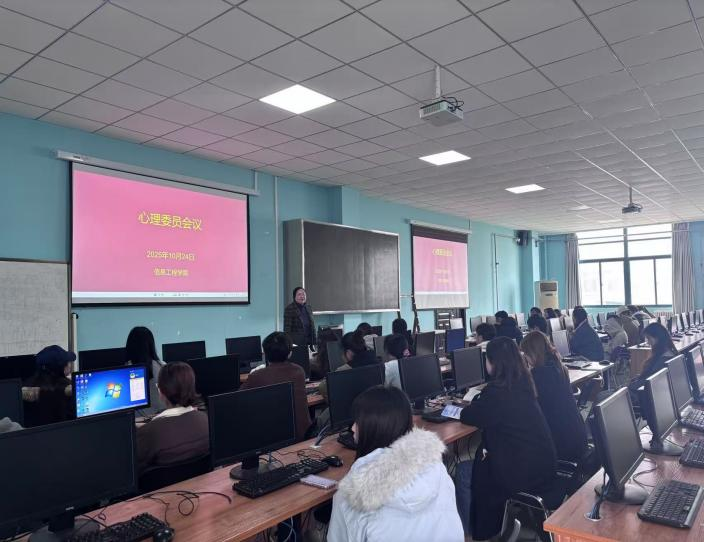 10月24日,信息工程学院于4号实训楼4407A2教室召开心理健康教育宣传节启动会。学院党总支副书记武琳琳主持会议,心理指导教师刘玲、相关辅导员及全体心理委员参会。会上,刘玲传达了我校《关于举办第二十一届心理健康教育宣传节活动的通知》精神,详细介绍了活动的目的、意义,明确了具体安排与要求。武琳琳对心理委员提出三项要求:一要深化学习,掌握心理健康知识,以身作则传递积极心态;二要提升能力,主动参与专业培训,增强朋辈辅导实效;三要严守纪律,细致开展日常排查,确保及时察觉、迅速上报。同时,要求全体辅导员与心理委员重视本次宣传节活动,积极动员、有效组织,引导学生积极参与,确保活动取得实效。