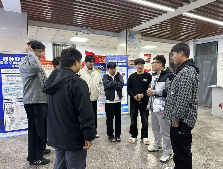 11月7日,信息工程学院辅导员翟宇航在16号楼学生宿舍一楼大厅组织召开宿舍长工作会议。会上,翟老师首先聚焦宿舍安全核心议题,结合近期高校宿舍安全案例,重点强调三项要求:一是严禁在宿舍使用大功率电器,杜绝私拉乱接电线等违规行为,每日离宿前需检查电源、门窗关闭情况;二是加强宿舍内消防安全意识,熟知灭火器位置及使用方法,禁止存放易燃易爆物品;三是关注舍友身心健康,发现异常情况或矛盾纠纷需第一时间向宿管或辅导员报告。