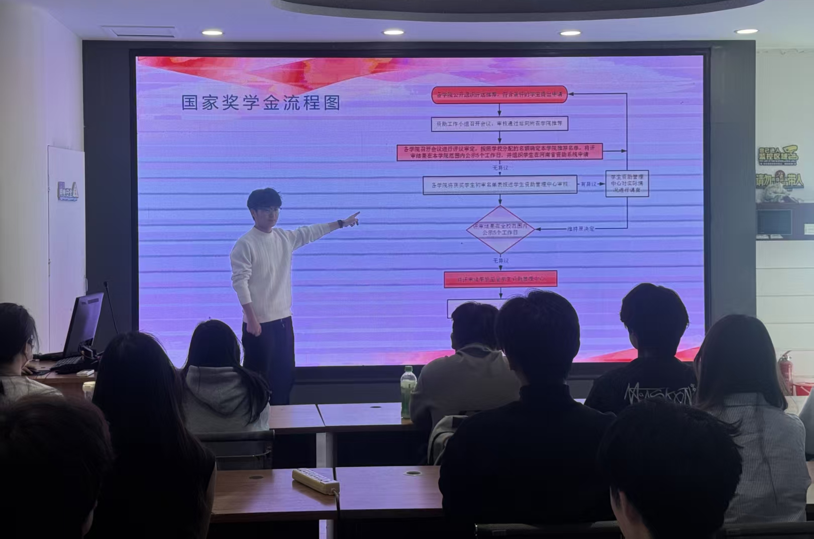 活动现场,围绕国家资助政策体系、学校专项帮扶措施、资助申请条件与流程以及资助资金发放与管理等方面进行了解读。通过真实案例分析与互动答疑,学生对国家教育公平政策和学校“应助尽助、精准帮扶”原则有了更为深刻的认识。“资助两节课”活动是学院资助育人的品牌项目,既属于政策宣讲,也是思想政治与诚信感恩教育课程。此次活动使学生掌握了政策知识,更坚定了他们努力学习、诚信做人、回报社会的决心。