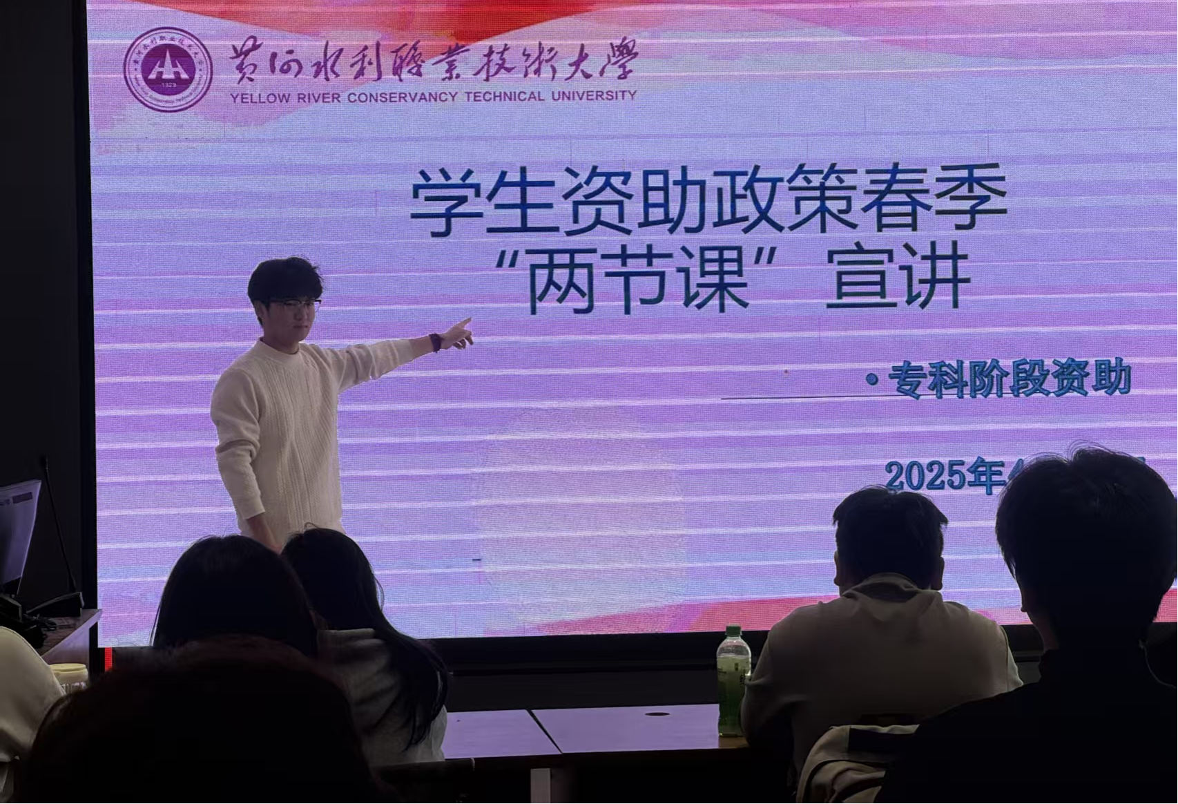 为全面贯彻落实国家教育资助政策,切实提高学生对各类资助措施的知晓度与理解度,同时做好2023届毕业生助学贷款还款指导工作,2025年4月11日,信息工程学院于实训楼4405C教室组织开展了“2025年春季资助两节课”活动。