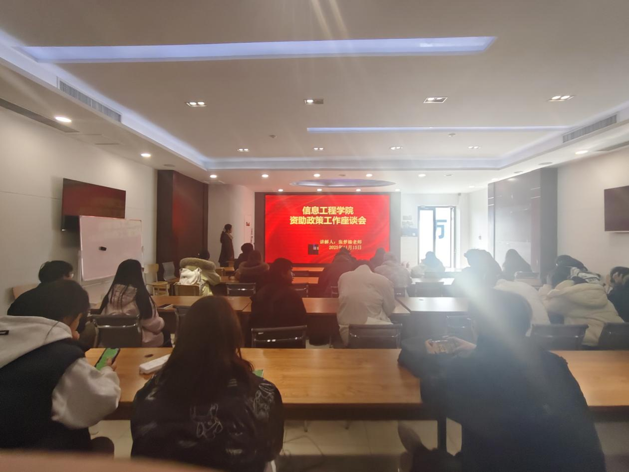 信息工程学院于2025年11月15日举办了“资助政策工作座谈会”。这次活动由张梦榛老师牵头,资助部干事辅助组织。举办此次座谈会的目的是帮助广大同学深入了解资助工作的意义与内容,引导同学们以更踊跃的态度配合相关工作,同时激励资助工作者更好地践行服务宗旨。