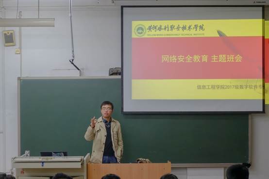 为了做好学生的网络安全教育,2018年11月26日晚上七点,信息工程学院2017级辅导员在二号教学楼2501召开信息工程学院2017级数字软件专业网络安全教育主题班会。