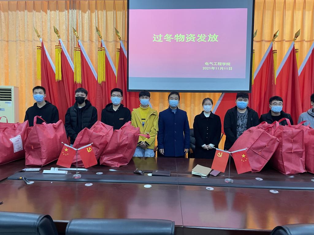 寒冬慰问送温暖,浓浓情意暖人心。为帮助家庭经济特殊困难学生解决实际生活困难,顺利御寒过冬,激励广大学生勤奋学习、努力进取,学校用专项经费为我校家庭经济特殊困难的学生购置一批棉衣、棉被,使其能温暖过冬。电气工程学院于2021年11月11日实训楼4302B进行过冬物资发放活动,出席本次活动主要人员电气工程学院副书记管欣老师,资助专员刘亚平老师以及相关经济困难学生。在发放仪式上,我院管欣书记做了重要讲话。