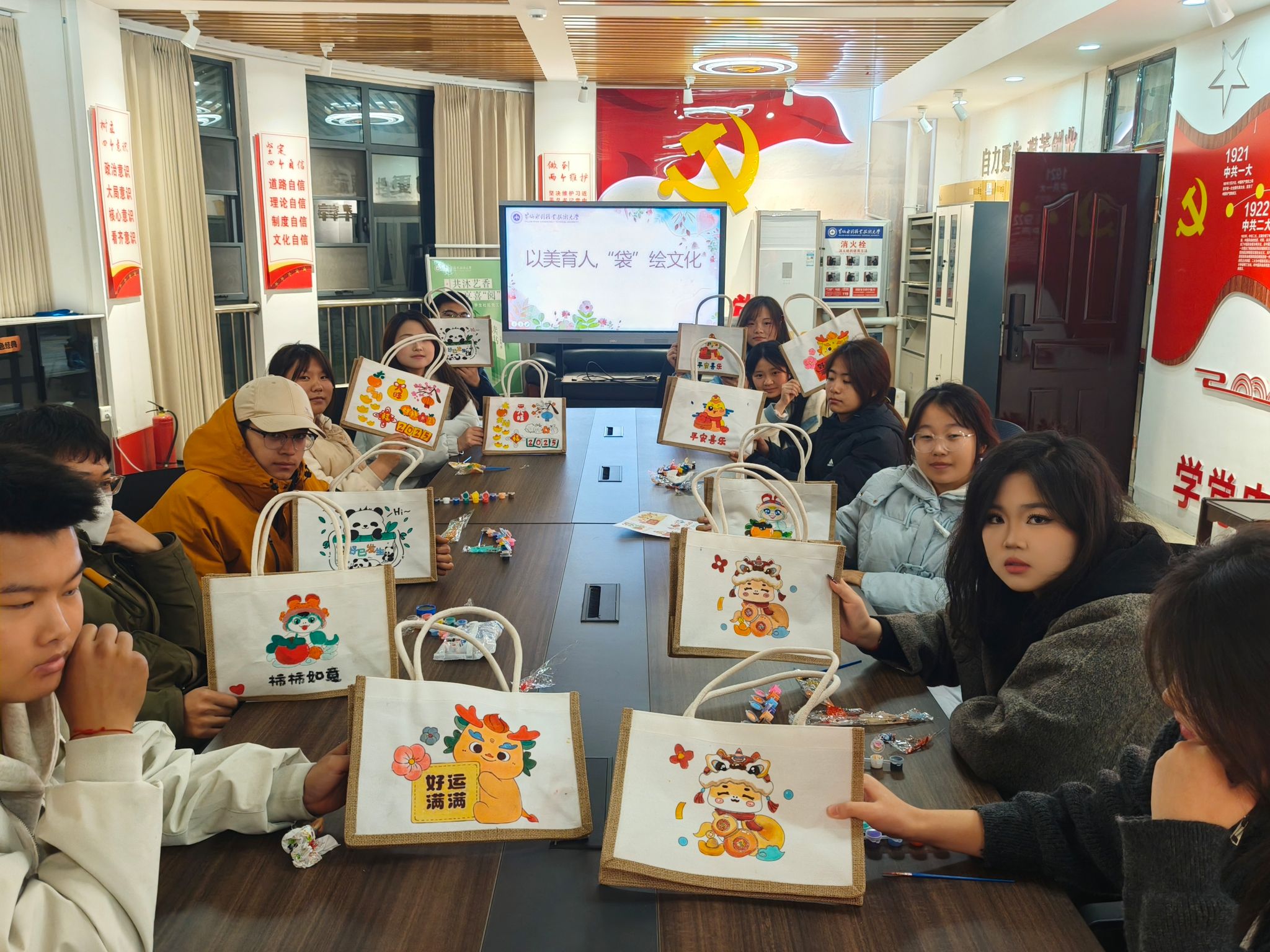 为丰富校园文化生活,以美育滋润心灵,12月9日,“一站式”学生社区党工委举办了以“以美育人,‘袋’绘文化”为主题的手提袋涂鸦活动。