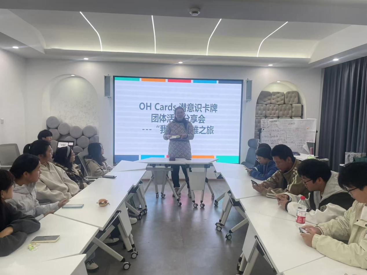 为了引导学生们探索潜意识中的真实自我,寻找个人困惑的解决之道,并获取前行的动力,10月21日下午,学生工作部心理健康教育中心于在学生社区心理辅导中心举办了“OH卡启智 解锁心世界”团体辅导活动。此次活动由兼职心理健康教师苑伟娟老师带领。同学们齐聚社区心理辅导中心团体活动室,在卡牌的指引下打开内心、连接彼此,收获了一段温暖而深刻的心灵成长之旅。