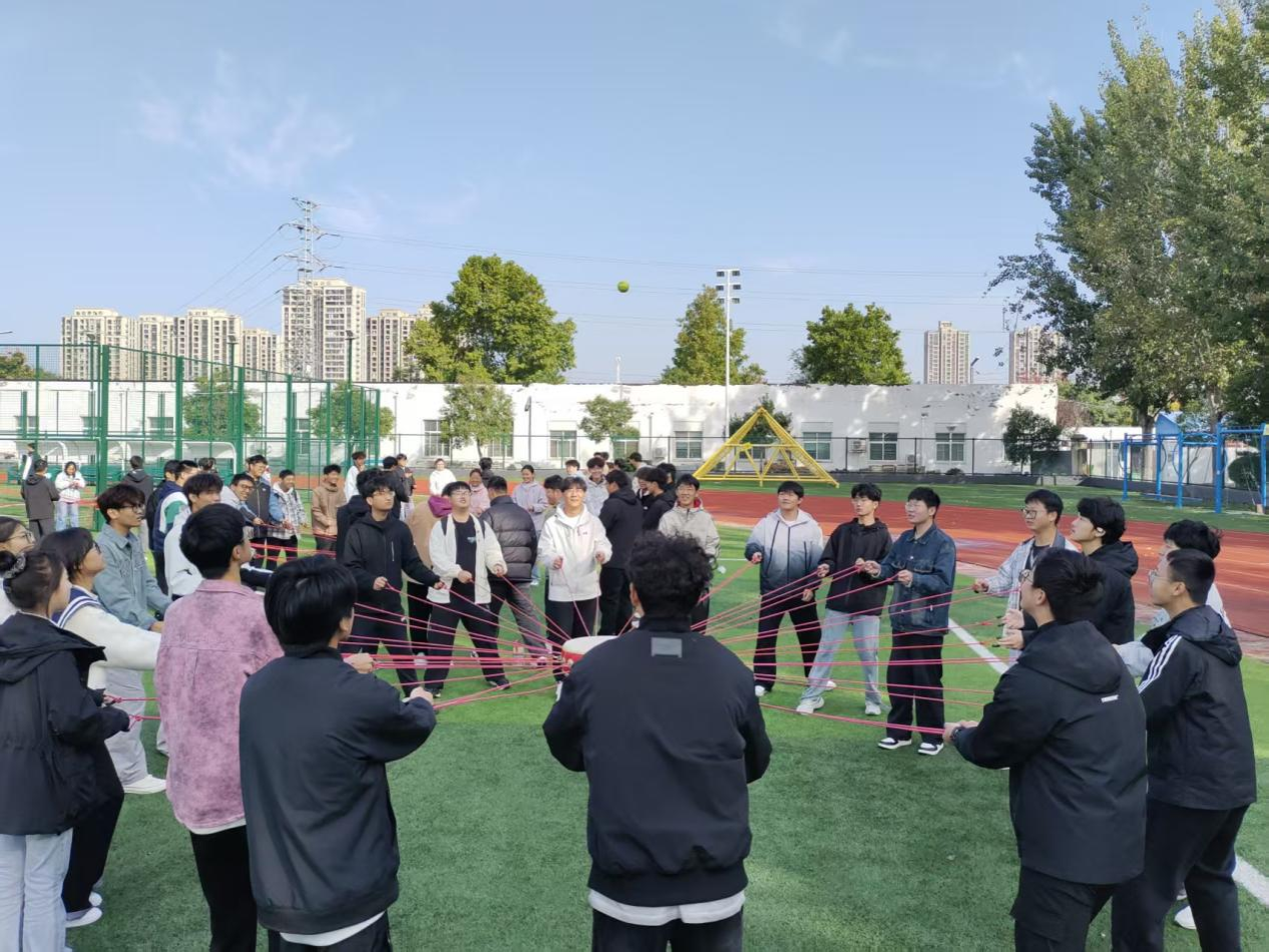 在西北操场的户外素拓环节,教官们设置了“破冰融合”“信任背摔”“巨人脚步”“同心鼓”等多个团队项目,同学们在协作完成任务的过程中,打破班级壁垒,从陌生到熟悉,从个体到集体,逐步培养起默契与信任。