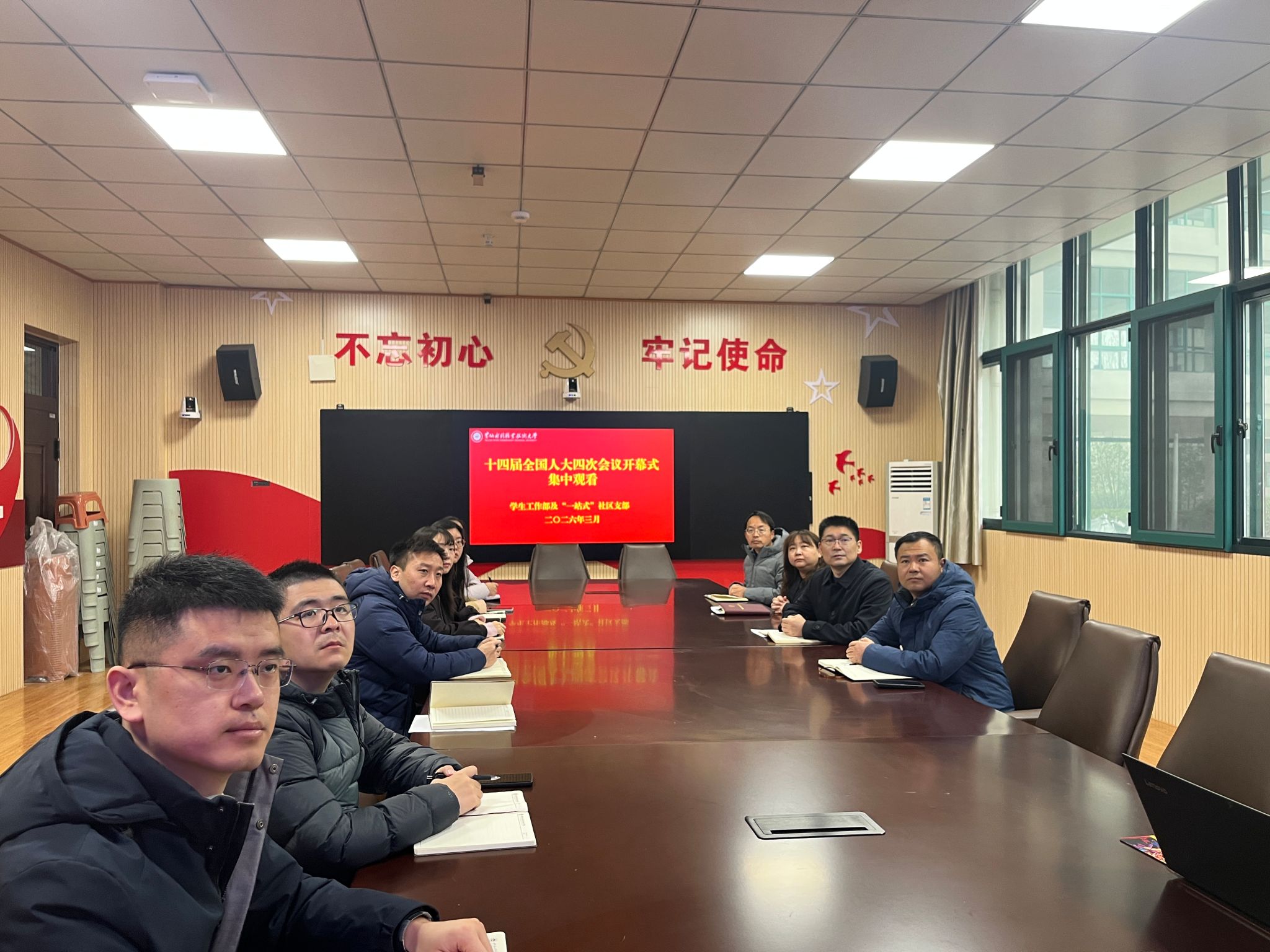 3月5日上午,十四届全国人大四次会议在北京人民大会堂隆重开幕,学生工作部及“一站式”社区支部组织全体党员干部、教职工,在JX5111会议室集中收听收看开幕式盛况,认真聆听国务院总理所作的政府工作报告,共话国家发展蓝图,共担育人使命担当。
