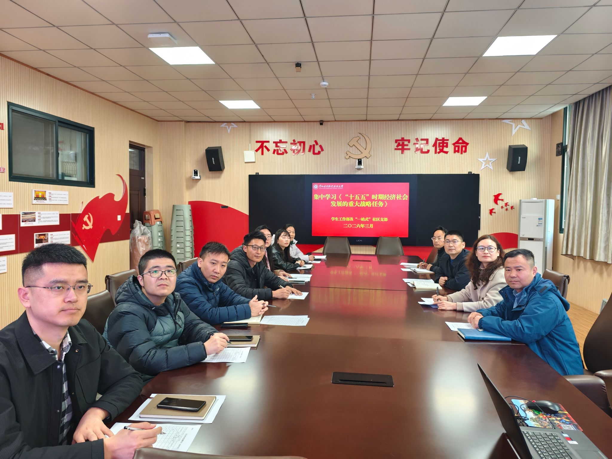 为持续学习贯彻党的二十届四中全会精神,精准把握“十五五”时期发展实践路径,3月27日,学生工作部及“一站式”社区支部在JX5111组织全体党员开展专题学习,集中观看共产党员网《“十五五”时期经济社会发展的重大战略任务》专题视频课程,推动全会精神落地见效。