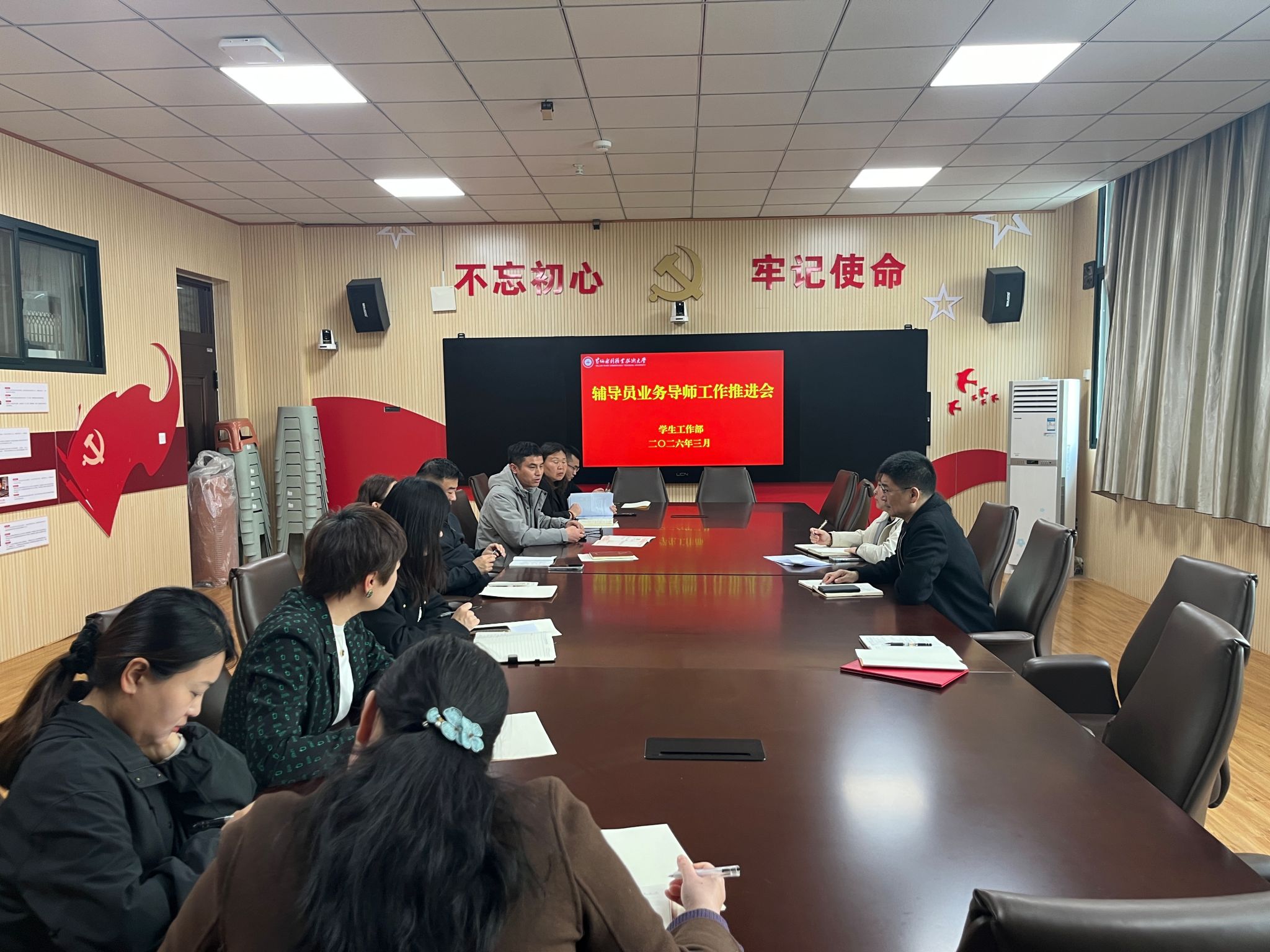会上,商坤部长首先强调,学校高规格聘任各位辅导员业务导师,既是对学生工作的高度重视,更是对各位导师专业能力、工作经验的充分认可与信任。他指出,业务导师是新任辅导员成长路上的引路人,肩负着传帮带的重要使命,对提升辅导员队伍整体素养、推动学生工作提质增效具有重要意义。