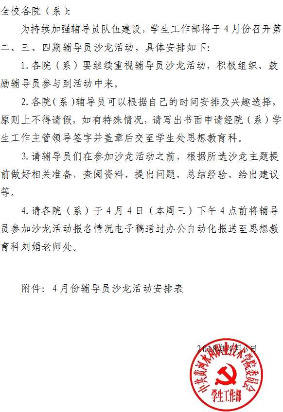 关于做好2017-2018学年第一学期辅导员考核工作的通知