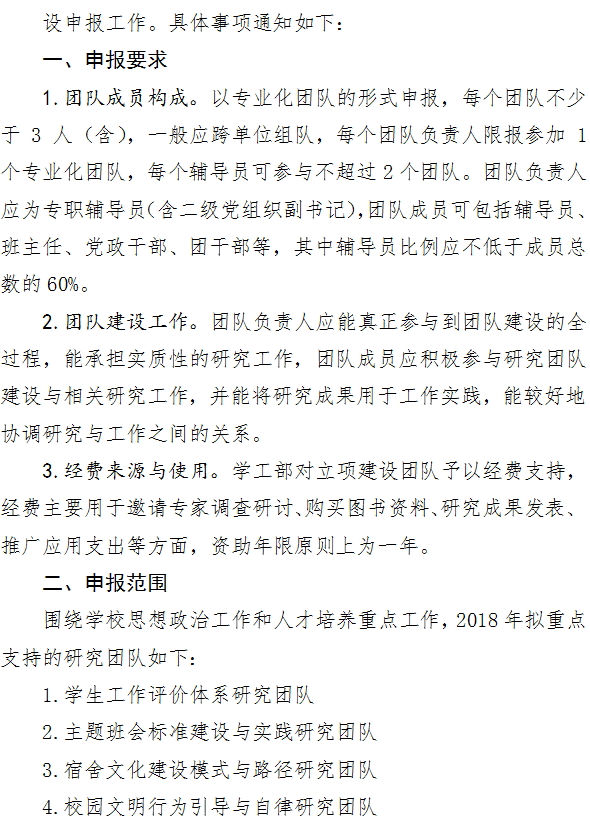 关于开展2018年辅导员专业化团队建设申报工作的通知