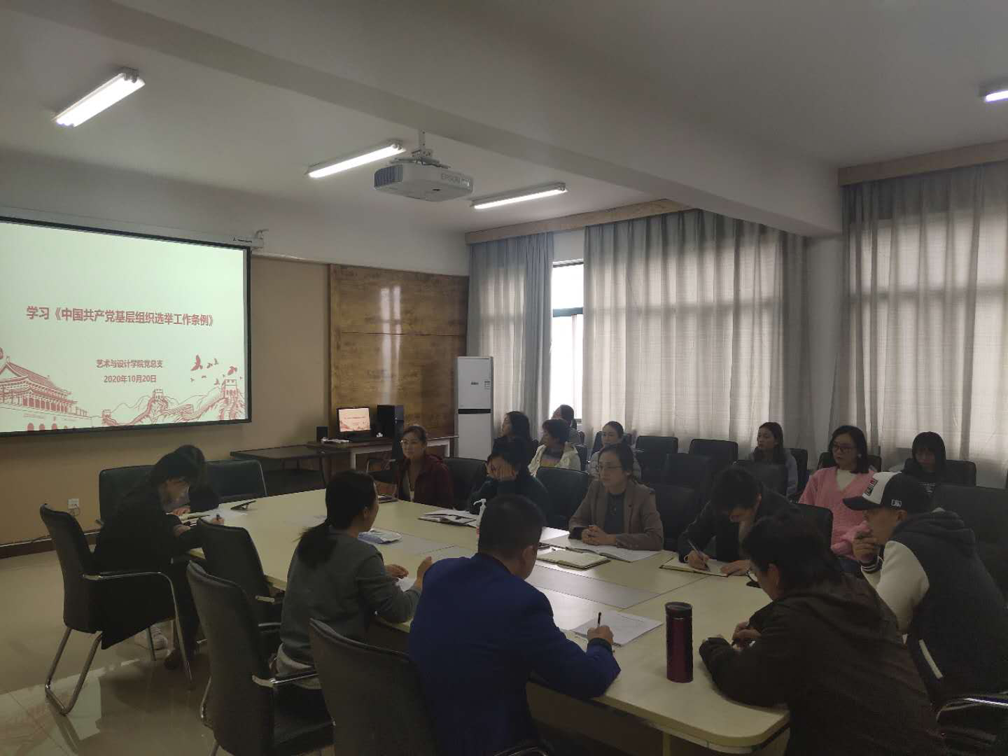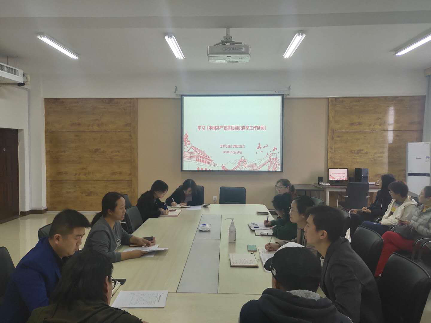10月20日下午,艺术与设计学院组织全体师生党员在院会议室SY5616集中学习 《中国共产党基层组织选举工作条例》,院党总支书记耿亚杰领学。