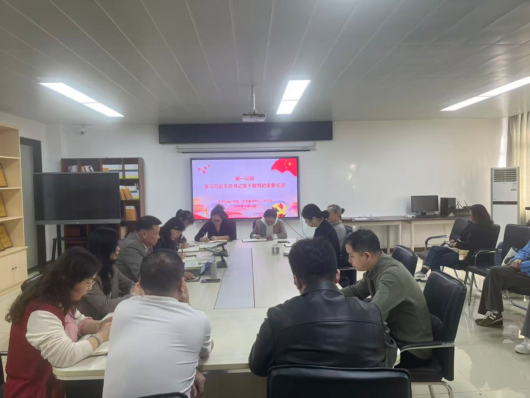 10月14日,艺术与设计学院(艺术教育中心)在SX5514会议室召开党员干部教育专题会议,党总支书记华雷、院领导及全体党员教师参加会议。