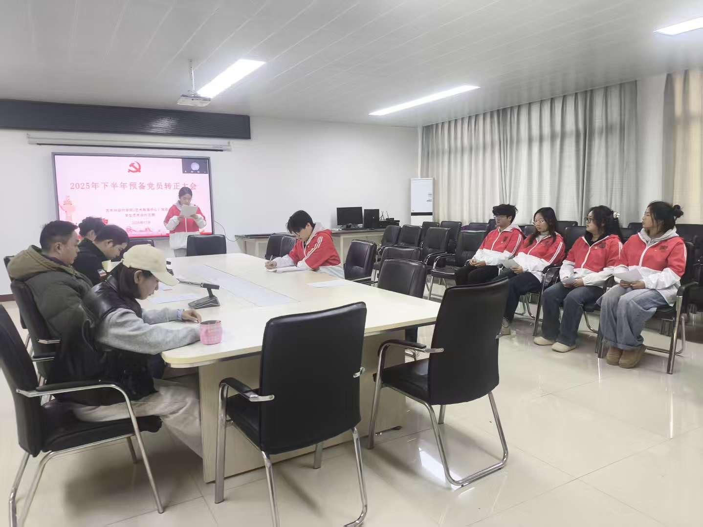 为规范党员发展程序,增强党员队伍的生机与活力,2025年12月17日,艺术设计学院学生艺术设计支部在SY5514召开了2025年下半年预备党员转正大会。本次大会支部全体党员、部分入党积极分子代表参加,会议由支部书记胡耀文同志主持。