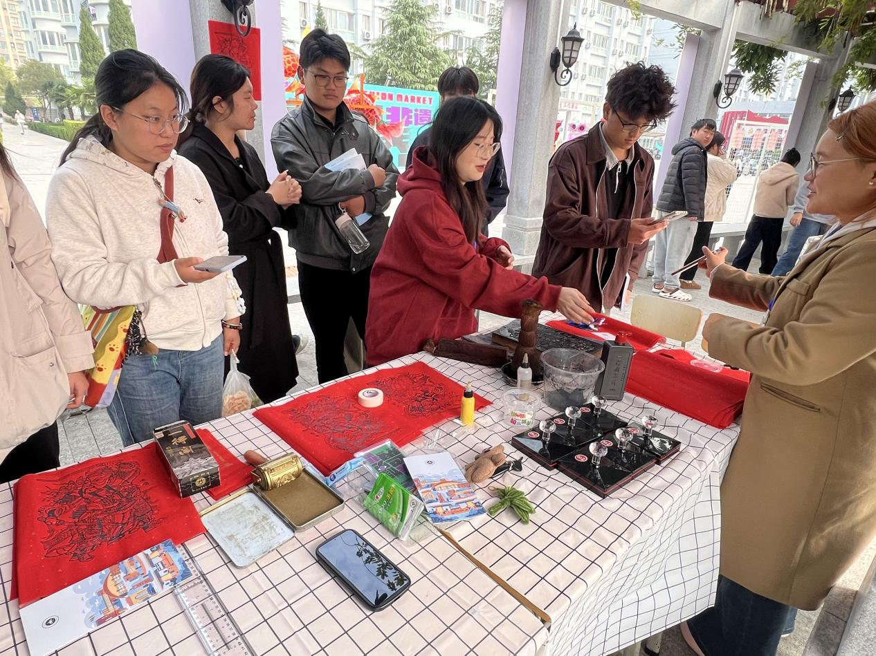 为推动中华优秀传统文化走进校园、贴近青年,搭建“传统与现代交融、校园与世界对话”的文化平台,10月23日至24日,艺术与设计学院(艺术教育中心)在学校扬帆广场精心举办“豫见非遗·对话世界——2025校园非物质文化遗产体验市集”活动,多名师生沉浸式感受中华优秀传统文化的艺术魅力,为校园美育实践注入鲜活的文化力量。