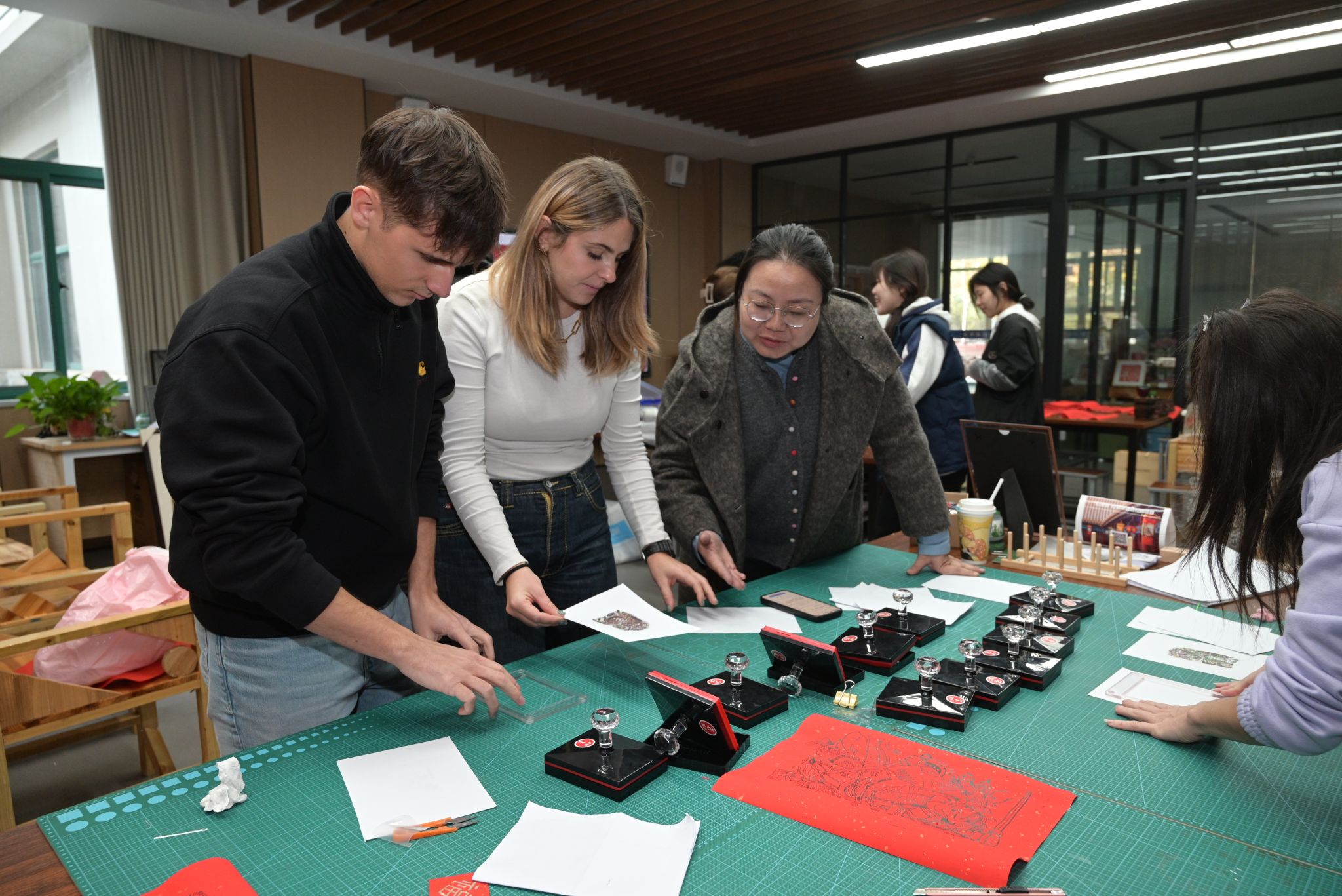 11月12日,意大利伦巴第机电一体化产业技术学院、贝卢齐-弗洛朗蒂职业教育学院等5所院校及教育机构的师生走进艺术与设计学院(艺术教育中心)非遗大师工作室,以“近距离触摸非遗”为主题,亲身体验中国非物质文化遗产的多样魅力和各色风采。