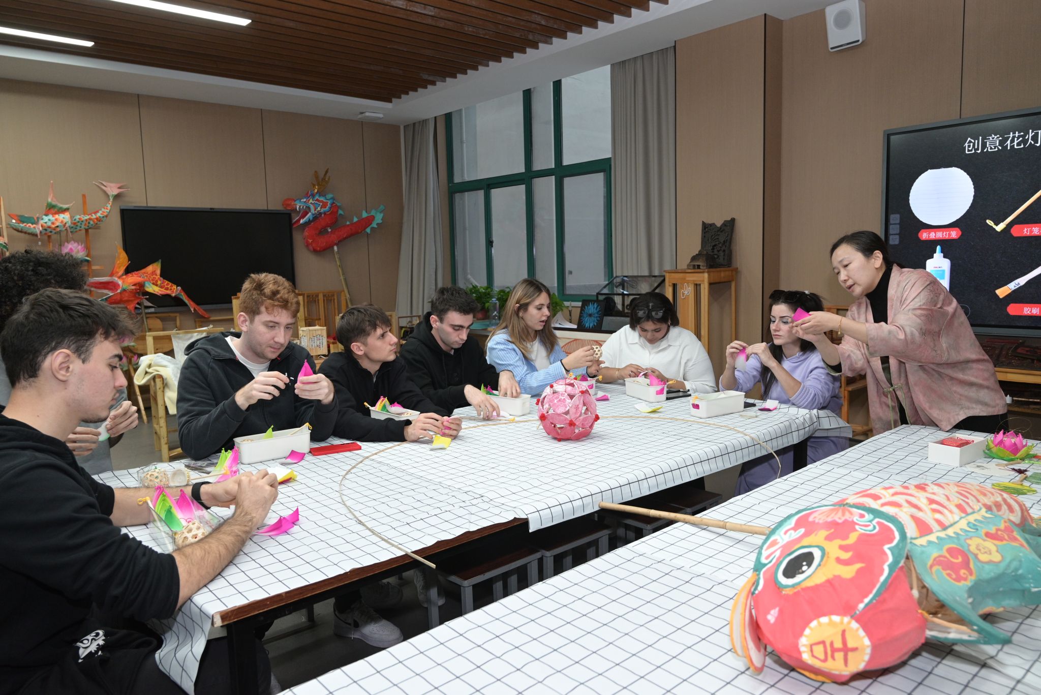 活动现场,艺术与设计学院(艺术教育中心)教师杨桦、周瑶精心准备了漆扇、灯彩、木版年画、扎染等中国非物质文化遗产体验项目。一天的体验结束时许多意大利学生都意犹未尽,深刻感受到了中国传统艺术的独特魅力。此次活动不仅为国际学生提供了一次难得的沉浸式体验机会,更让他们在动手实践中领略到了中国非物质文化遗产的博大精深。