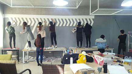 《装饰构造与工艺》课程是环艺专业的基础课程,但同时又是学生走向工作岗位必须掌握的一门重要技能,因此,为了更好的在有限课时中让学生掌握并亲自感受装饰材料和相关的施工工艺流程,对今年16级的本门课程做了一次大胆的改革,把以前理论化的知识作为课下作业,学生通过材料市场调研来自主学习掌握,课上让同学们根据课下学到的知识来实际动手完成界面造型创意设计作业,学生以小组为单位,共同讨论创意方案,并进行任务分工寻找相关的装饰材料,并研究制作工艺,通过一个星期的实际动手操作,很多创意方案都得到的很好的实现。学生们不仅通过实操来掌握理论知识,同时在制作的过程中也获得了乐趣和成就感。