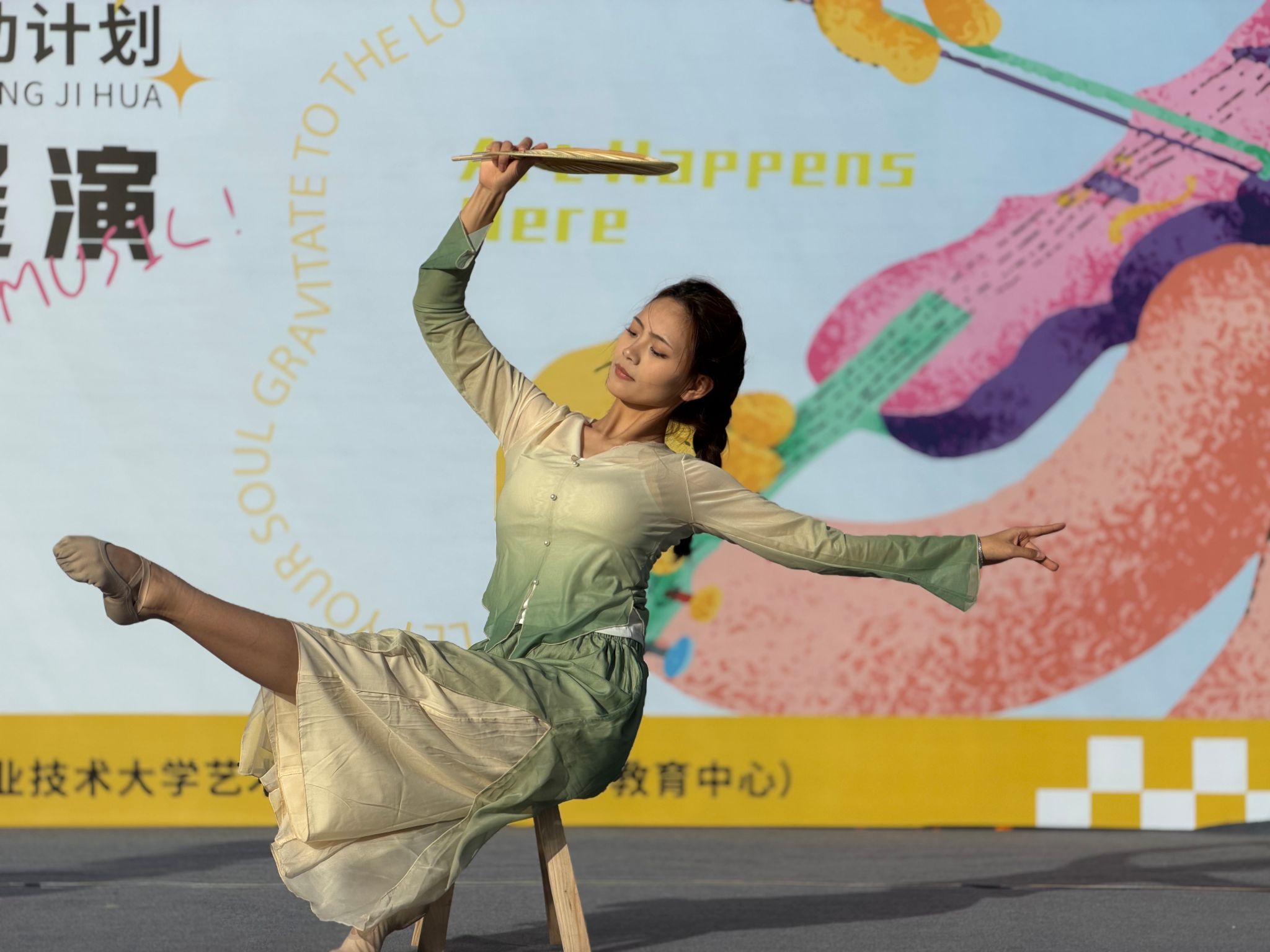 展演在活力四射的《盘古表演和》开场舞《嘿吼哈》中拉开帷幕。竹笛合奏《美丽的神话》,古琴独奏《桃李园序》尽显中华传统乐器的悠扬典雅,让同学们在丝竹之音中感受中华优秀传统文化的博大精深,涵养文化自信。独舞《胶州秧歌》将民俗艺术的独特韵味展现得淋漓尽致,四人舞《一荤一素》以温情脉脉的舞姿,演绎出平凡生活中的亲情暖意,细腻的情感表达引发全场共鸣。器乐演奏环节亮点纷呈。排鼓《楚汉决战》将展演推向高潮,鼓点铿锵有力、节奏张弛有度,展现出雄浑豪迈的气魄,让师生们直观感受传统打击乐的震撼力。
