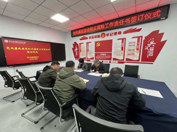 4月8日,资产经营管理中心举行党风廉政建设和反腐败工作责任书签订仪式。会议由党总支书记赵彦华主持,部门领导班子及两个职能科室科长参加会议。