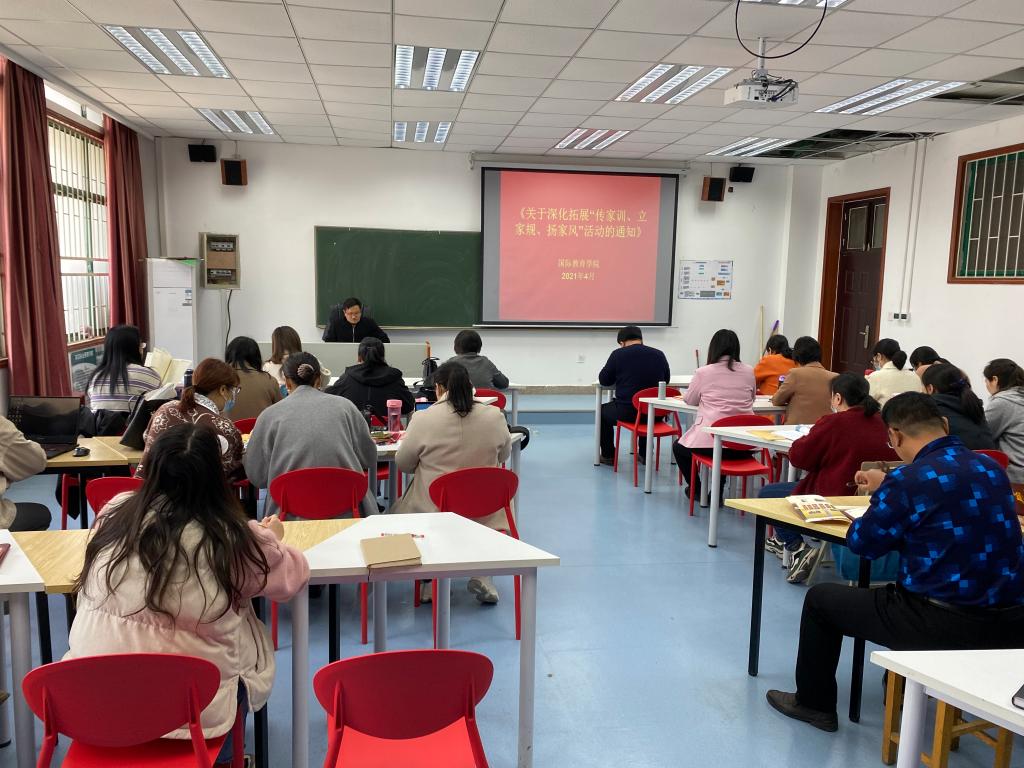 在会上,楚万强对所有教师提出了三点要求。一是提高思想认识,深化新时代文明家庭建设的核心思想。二是加强活动宣传,充分发挥融媒体和网络传播的优势推进文明家庭建设。三是发挥家庭主体作用,为传承中华民族传统美德,弘扬社会主义核心价值观作出表率。楚万强强调,学院全体教职工要高度重视深化拓展“传家训、立家规、扬家风”活动,充分认识到家庭文明建设的重要性,负起责任,切实把家庭文明建设提上日程。在保证家庭和谐的基础上,也要重视学院和谐之风。结合学校的总体活动安排,创新开展各项活动,将其作为推动社会主义核心价值观落细落小落实的有效途径,作为深化新时代文明家庭建设的重要抓手,切实把各项主题活动落到实处、抓出成效。
