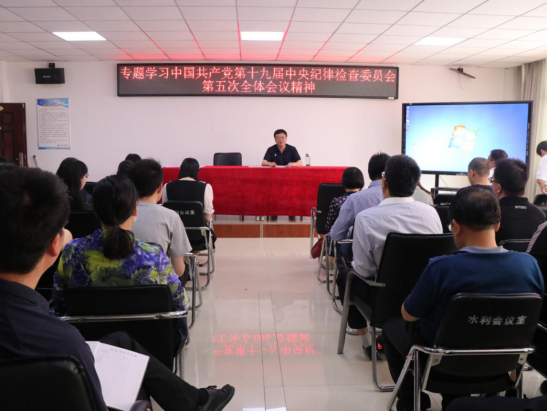 5月25日下午,水利工程学院在SY5310召开专题学习会议,深入学习中国共产党第十九届中央纪律检查委员会第五次全体会议精神,学院党总支书记孙天星、院长陶永霞及全院教职工参加了会议。会议由孙天星主持。