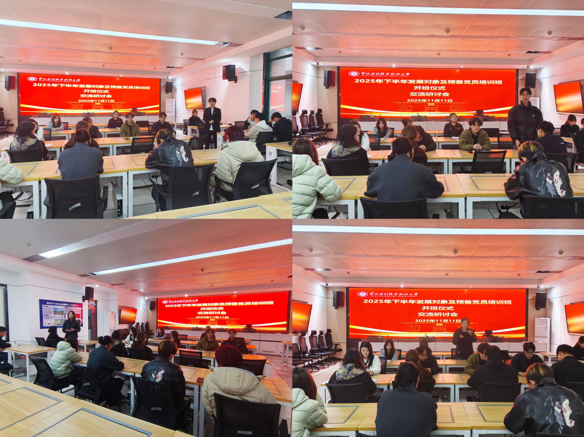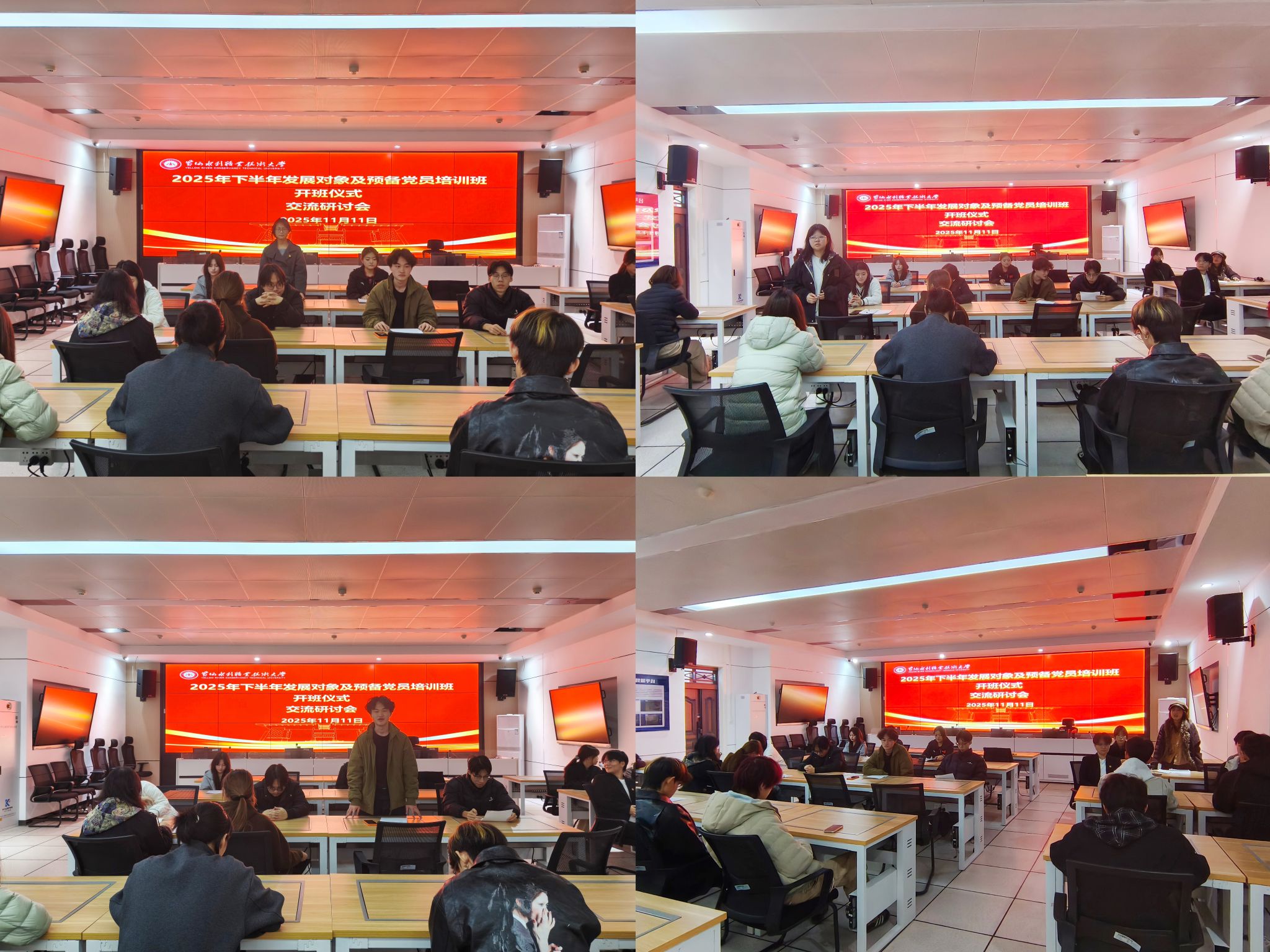 近日,测绘工程学院党总支在SY8118举行2025年下半年发展对象及预备党员培训班开班仪式,党总支书记高琼、学生测绘工程一支部书记李忠旺、学生测绘工程二支部书记杜文志和全体辅导员老师参会。会议由党总支办公室主任赵欣主持。